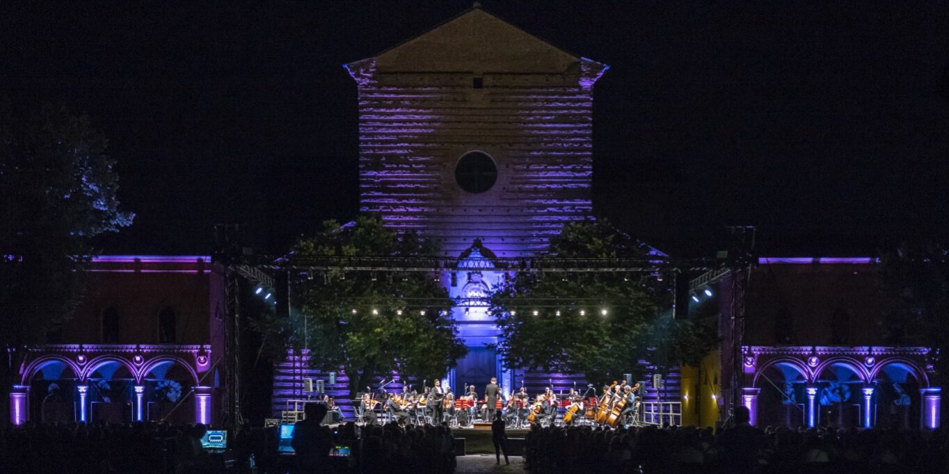 Sul palcoscenico, allestito nella splendida cornice della Certosa Monumentale, saliranno: il Coro Filarmonico Rossini di Pesaro diretto da Federico Raffaeli, il Coro di Voci Bianche “Le Allegre Note” di Riccione diretto da Fabio Pecci, il Coro del Conservatorio G. Frescobaldi di Ferrara, con la direzione di Manolo da Rold; Fausto Negrelli ai timpani, Fabrizio Benazzi, Alessandro Onorato, Matteo Quarti, Martino Via alle percussioni; Andrea Ambrosini al primo pianoforte, Niu Haiyao al secondo pianoforte; Fabiana Visentin soprano, Luìs Arance Ortega tenore, Wang Weihang baritono; direzione di Federico Cavalieri, Andrea Piergentili, Francesco Zamorani.